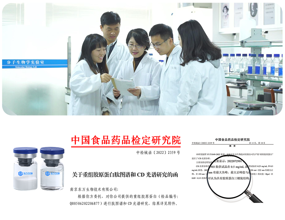 東萬(wàn)生物采用合成生物學(xué)技術(shù),構(gòu)建出具有完整三螺旋活性結(jié)構(gòu)的重組人膠原蛋白,與天然膠原蛋白的氨基酸序列完全致。已研發(fā)出I型、II型、III型、IV型、XVII型重組人膠原蛋白,更多分型持續(xù)開(kāi)發(fā)中。